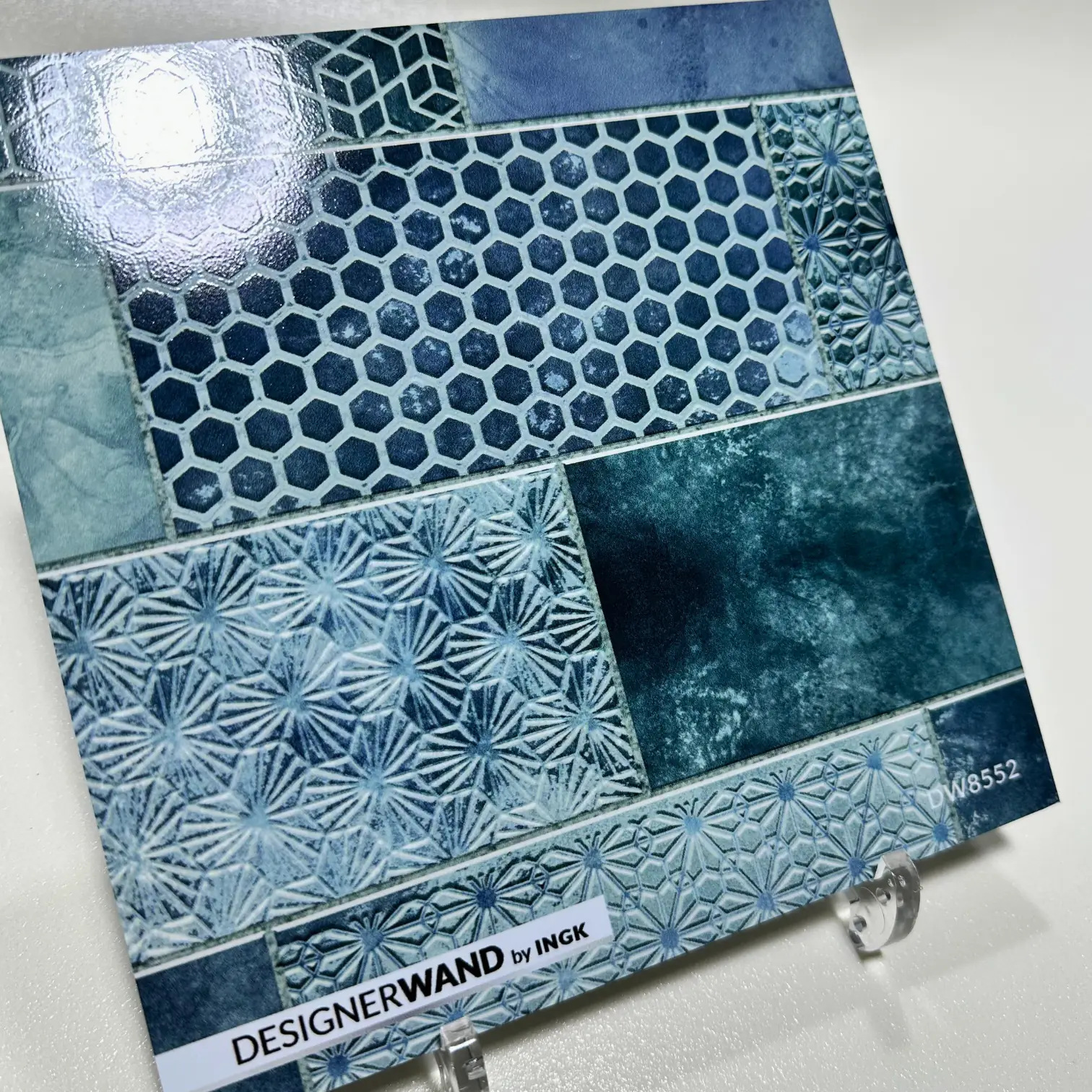 Tiless Pattern Petrol – DW8552 combine le meilleur des deux mondes : la richesse colorée des carreaux portugais avec le look épuré des carreaux métro. Chaque carreau contient un motif géométrique différent – nid d’abeille, étoile, cube, rosette – en magnifiques tons vert pétrole, vert marin et bleu-vert avec un effet émaillé patiné. La photo d’ambiance montre à quel point cette crédence se combine joliment avec un îlot de cuisine blanc, un grille-pain SMEG et des plantes vertes. Un choix idéal pour ceux qui recherchent une crédence unique et pleine de caractère.