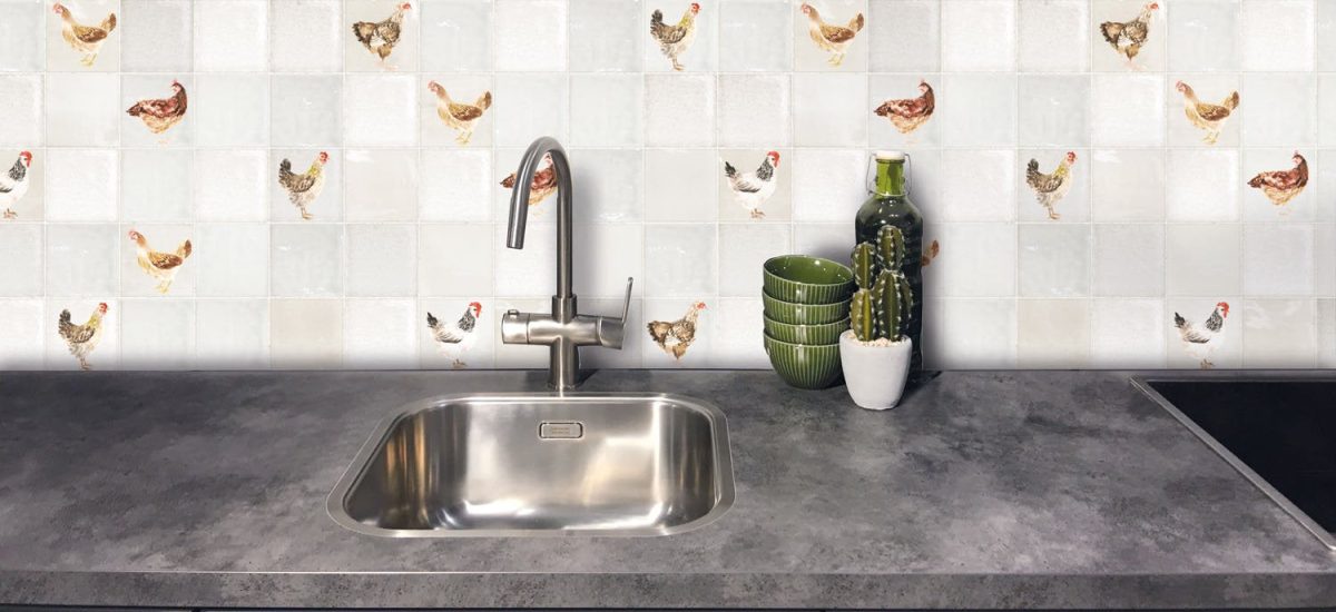 MIX AND MATCH. De antieke tegelwand is erg populair en komt in meer dan 10 kleuren. Te mixen met alle designs die je tegenkomt op onze website. We hebben al een aantal ontwerpen klaargezet met blossom en kippen. Een geweldige manier om je oude keuken een opknapbeurt te geven die die verdient. De wanden zijn voordelig en zeer eenvoudig te monteren. Heb je speciale wensen voor jouw keukenwand? Dan kun je altijd contact met ons opnemen en wij helpen je graag verder.