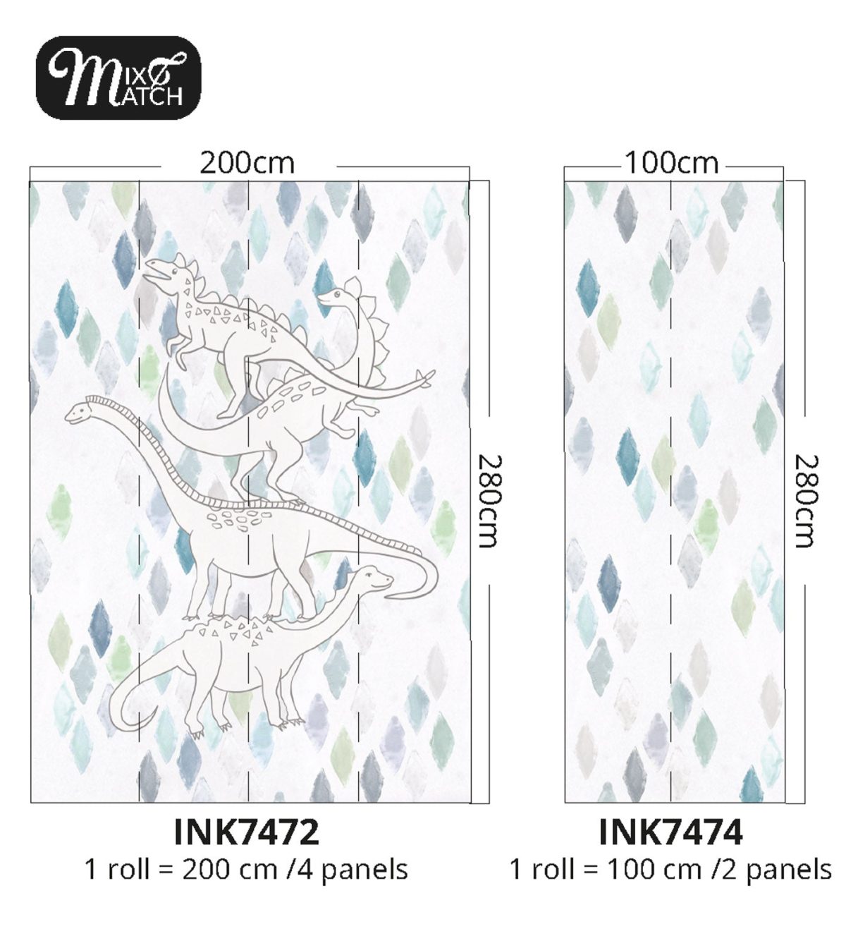 Je kunt dit behang mixen & matchen met INK7473 Dino’s Play of INK7474 Dino’s Wall Mix & Match. Je kunt het doorplakken op één muur zodat je zelf kunt bepalen waar je je hoofdontwerp plakt. Of je kunt het op een tegenoverliggende muur plakken.