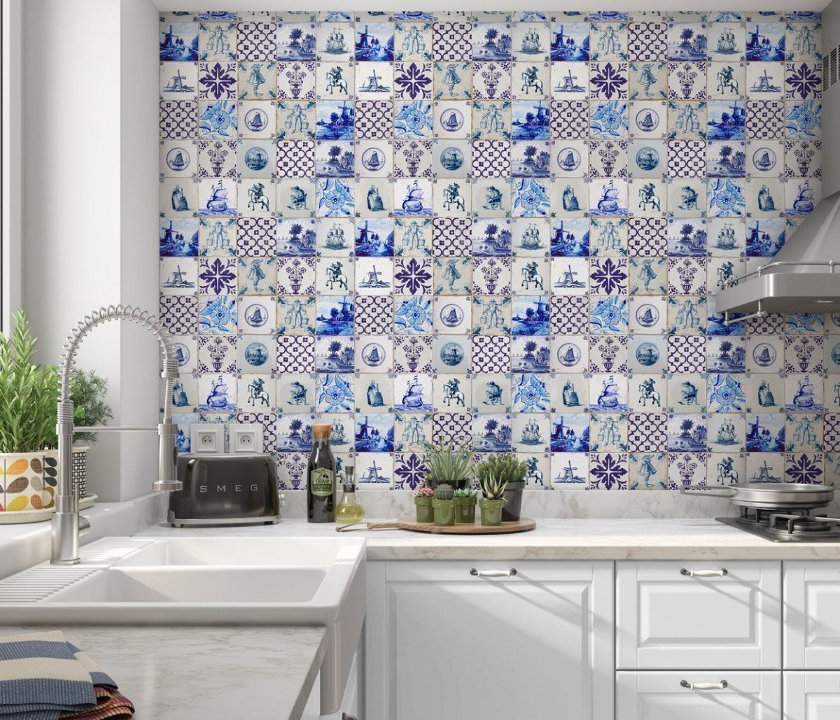 Oud Hollandse sferen met dit Delfts blauwe keuken achterwand design. Zet stroopwafels en ganzenbord op tafel en iedereen voelt zich gelijk weer lekker thuis. Bak een lekkere appeltaart en geniet van je keuken samen met de kids.